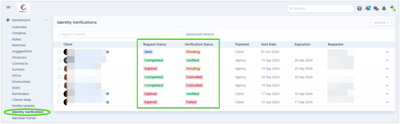 Efficient Monitoring: You can quickly check a client’s verification status both on their profile page and the Identity Verification list page.
